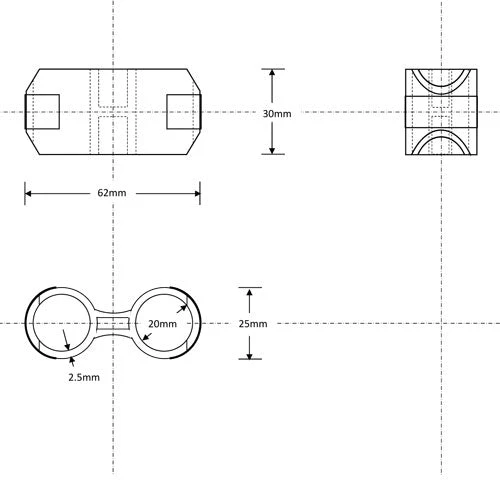 Made to fit our ¾ inch (19mm outside diameter) diameter aluminium tubing.