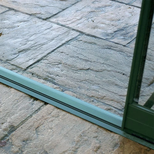 Framework including integral base – manufactured from sturdy, maintenance free aluminium. The integral aluminium base enhances ease of construction enabling the whole frame to be simply bolted together. The 1’11″ (600mm) wide door has been dropped into the aluminium base providing a ground level threshold allowing easy access for the user.