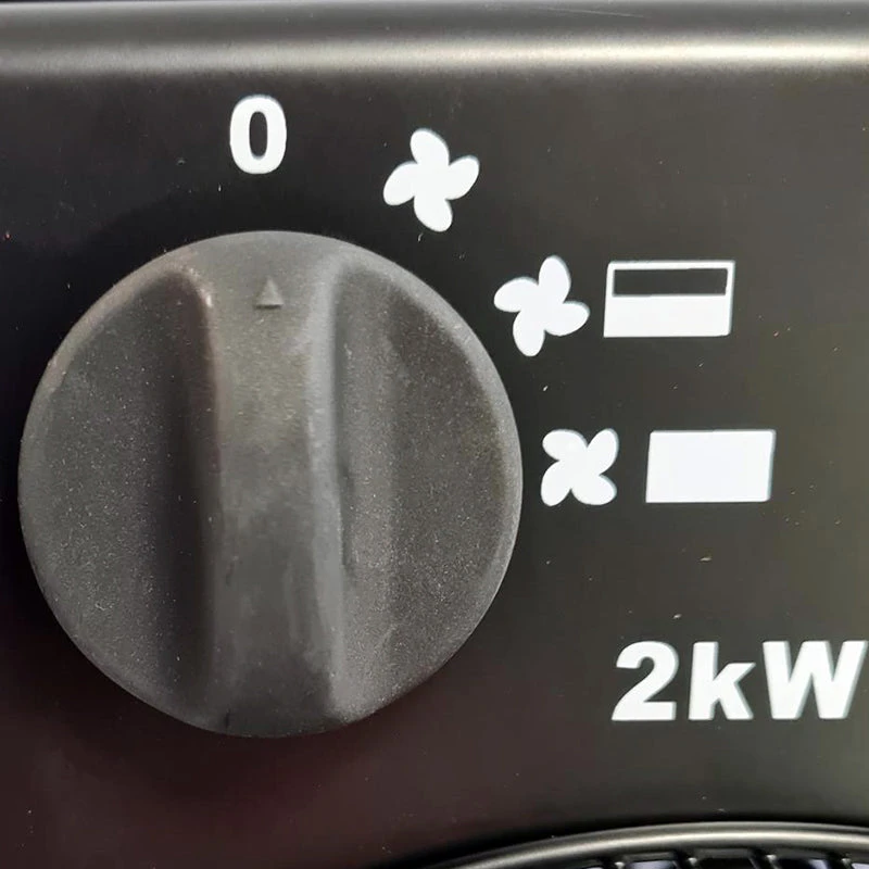fan plus 2kW power – for areas up to 8ft x 10ft, the fan cuts in and out when the heating element turns on and off.