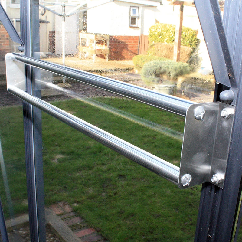 The mounting rail has fixing centres of 615mm, designed to fit 90% of all greenhouse and comes supplied with cropped head bolts and nuts for ease of installation.