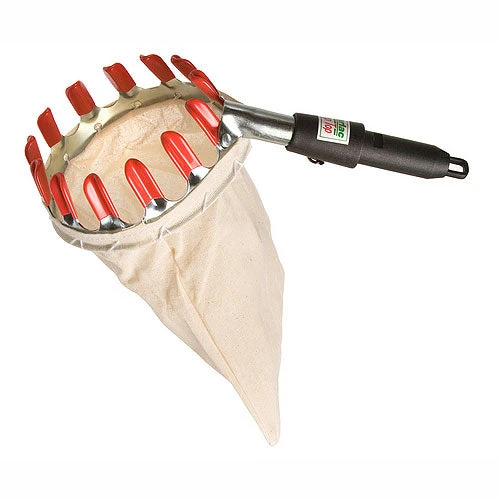 To Use: gently ease the galvanised fingers around the top of the basket over the fruit and round the stem, with a gentle tug the fruit will fall undamaged into the soft bag below.