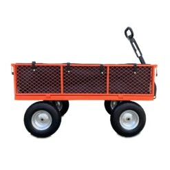 Due to it’s four, widely spaced large, puncture proof, pneumatic tyres and low stance, this dump cart is easy to move the cart over all types of surfaces.