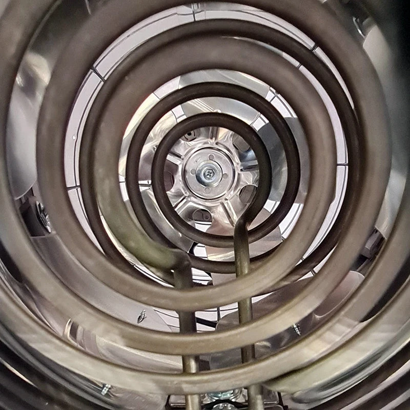 A powerful internal fan uses only 40 watts of power to circulate 400 cubic metres of air per hour, the fan runs continuously whilst the heating element switches on and off as the required temperature is reached.