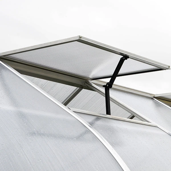 Good Ventilation – with opening roof vents (glazed with 4mm twin-wall polycarbonate) included helping you to regulate heat and humidity within the greenhouse. You will receive one roof vent with the 8×8 model, two roof vents with the 8×12 model, three roof vents with the 8×16 model and four roof vents with the 8×20 model.