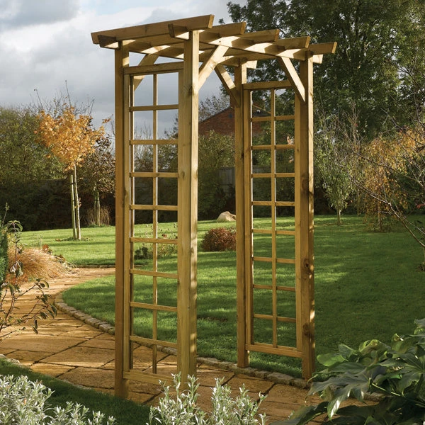 Manufactured from – timber which has been pressure treated to protect against rot, whilst still having a natural timber finish. You can paint or stain the arch if required.Â