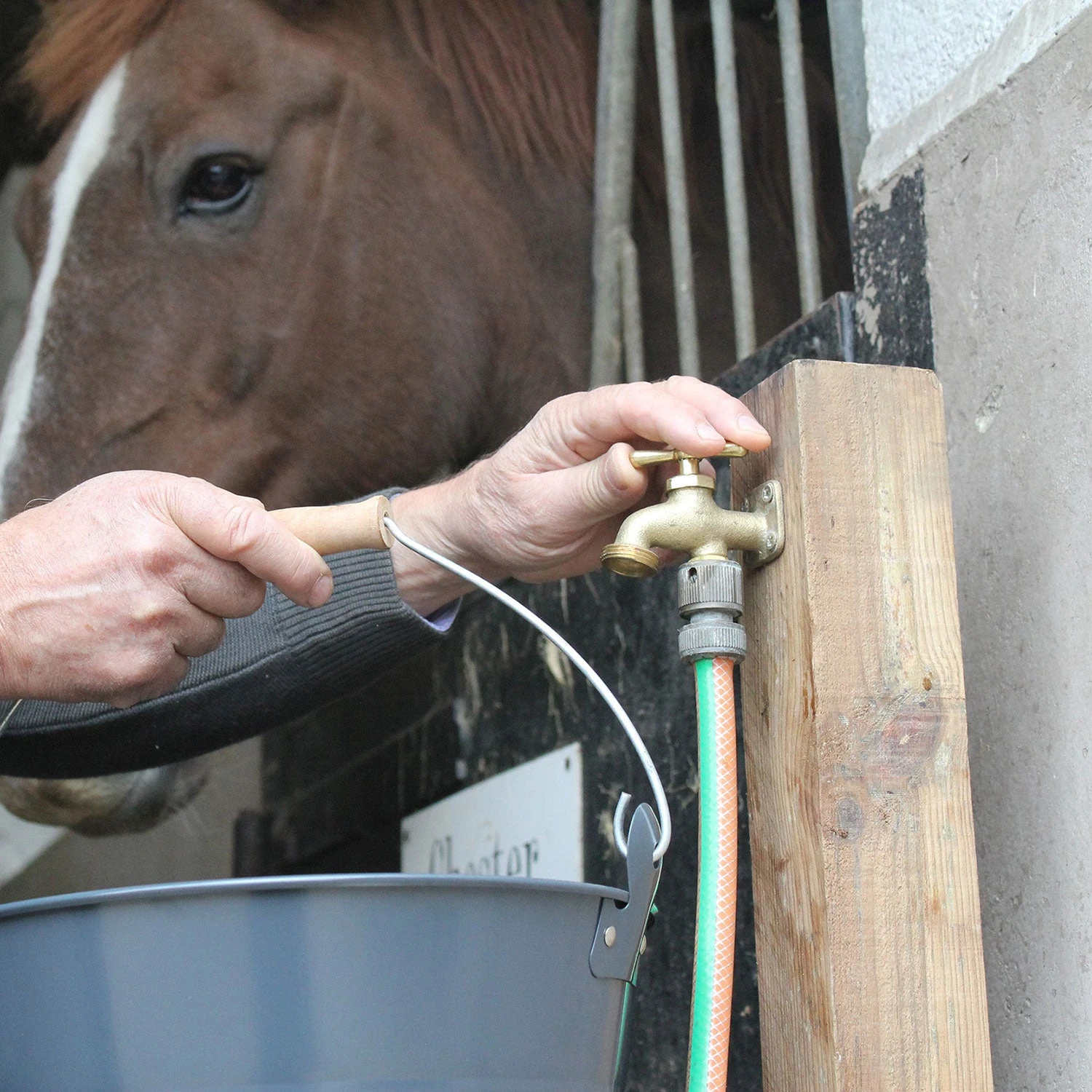 Use a hose with a snap-on connector to carry water to the lower fixing on the tap. You now have a usable tap – simply turn the tap to fill a watering can or container or attach fittings to the ¾ inch (19mm) screw outlet to carry water elsewhere.